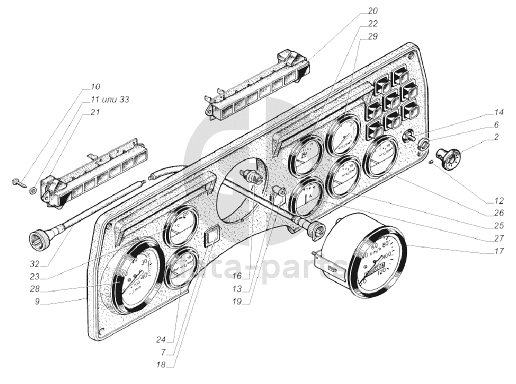 33081-3805010-50. Щиток приборов ГАЗ-33081
