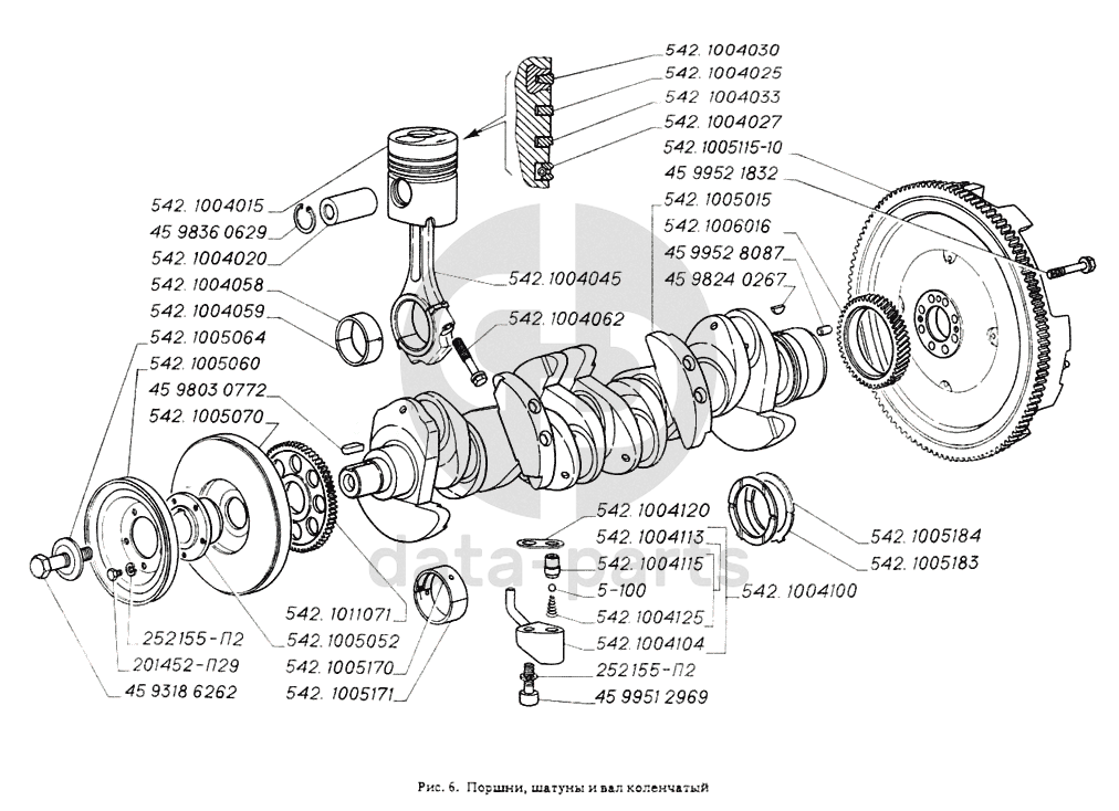 Поршни, шатуны и вал коленчатый ГАЗ-4301