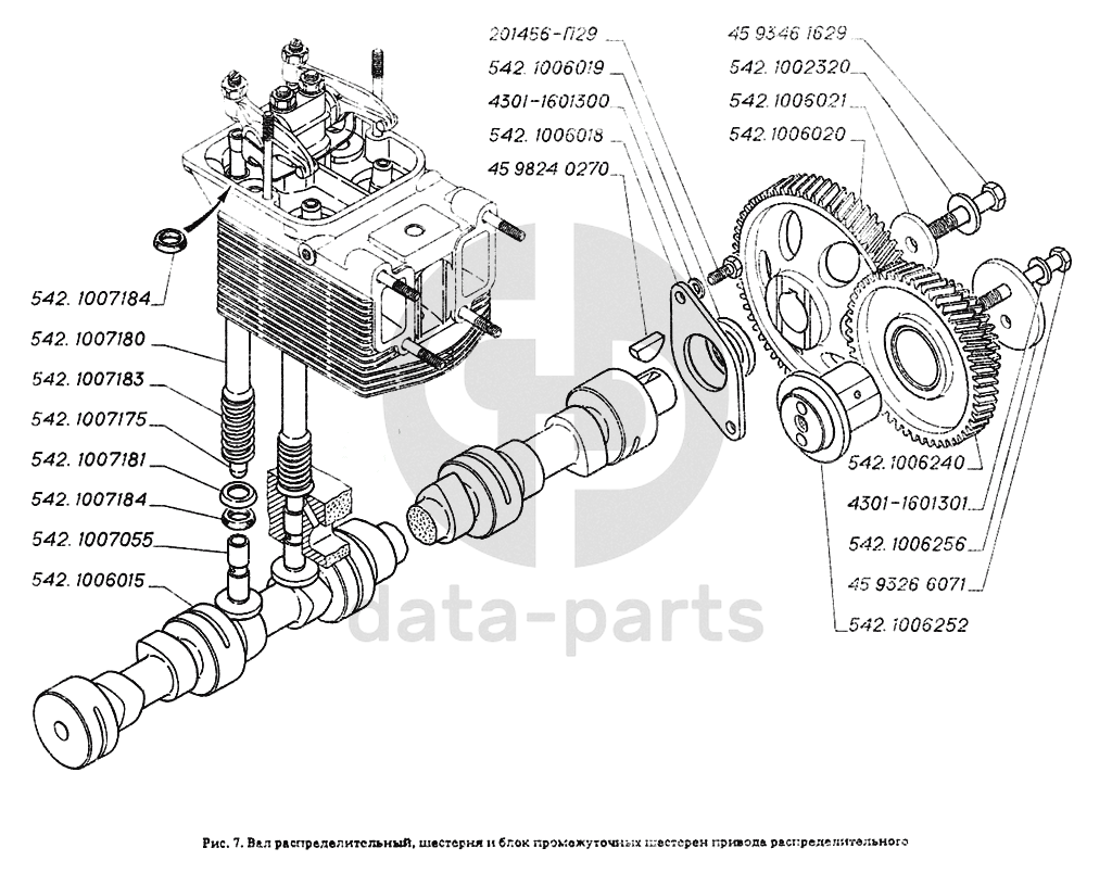 Вал распределительный, шестерня и блок промежуточных шестерен привода распределительного вала, толкатели клапанов ГАЗ-4301