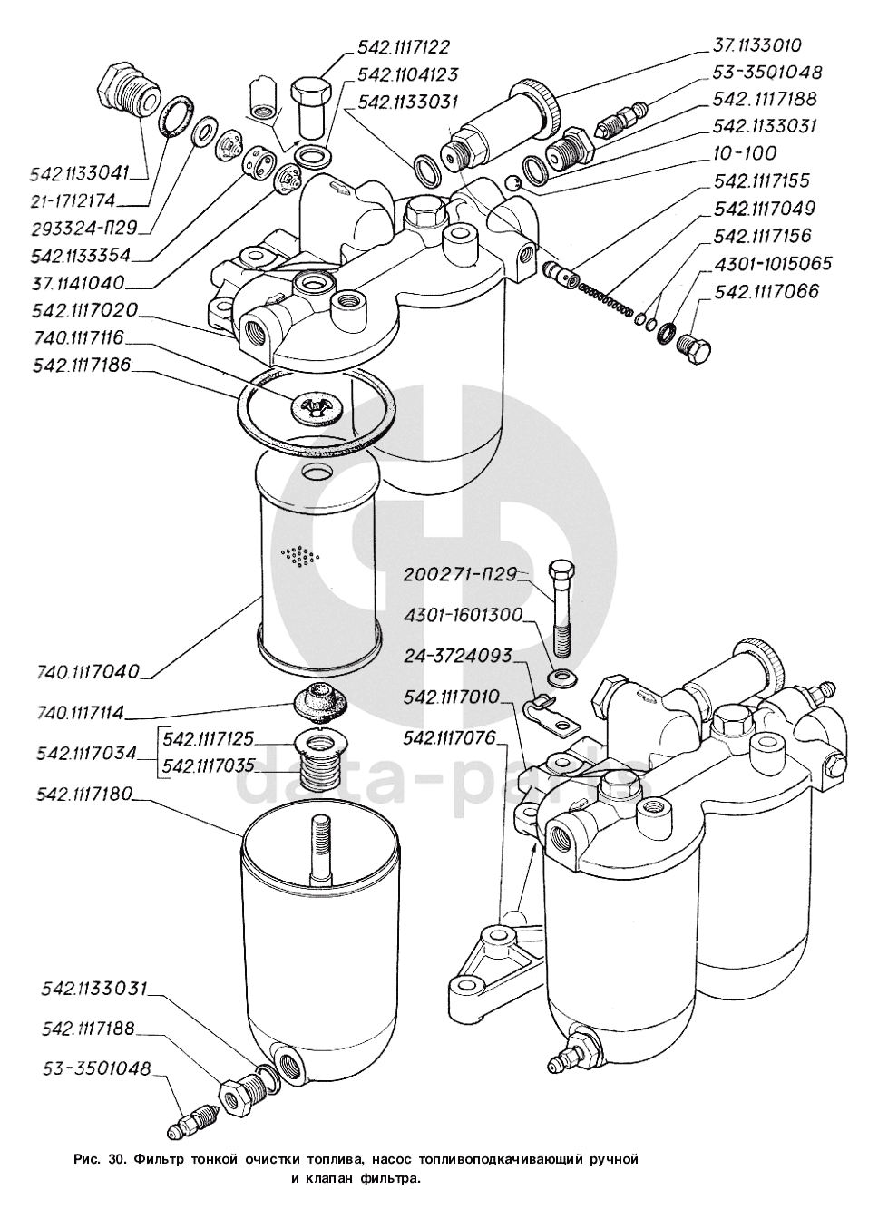 Фильтр тонкой очистки топлива, насос топливоподкачивающий ручной и клапан фильтра ГАЗ-4301