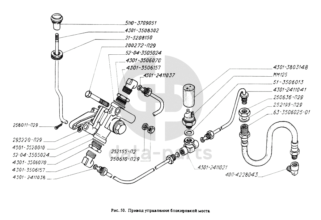 Выключатель сигнализатора блокировки моста и сигнала торможения ММ125 (покупная деталь)