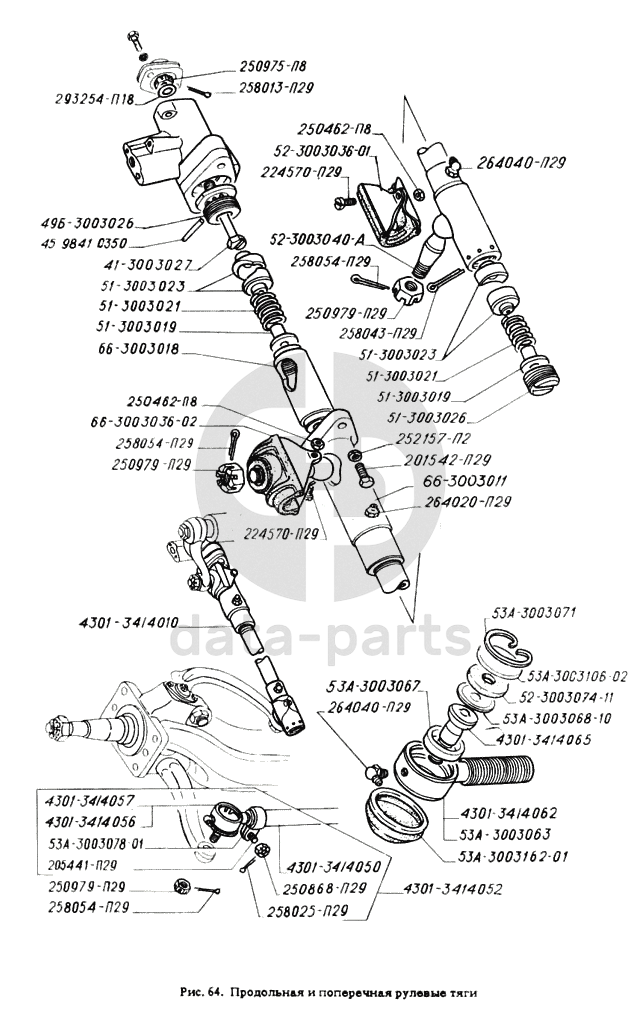 Продольная и поперечная рулевые тяги ГАЗ-4301