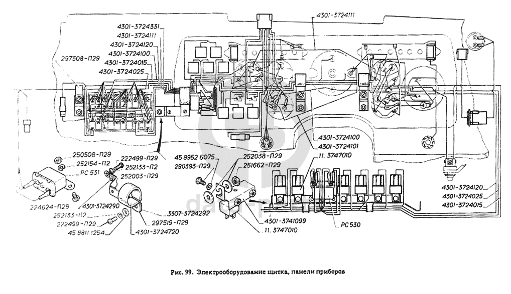 Электрооборудование щитка, панели приборов ГАЗ-4301