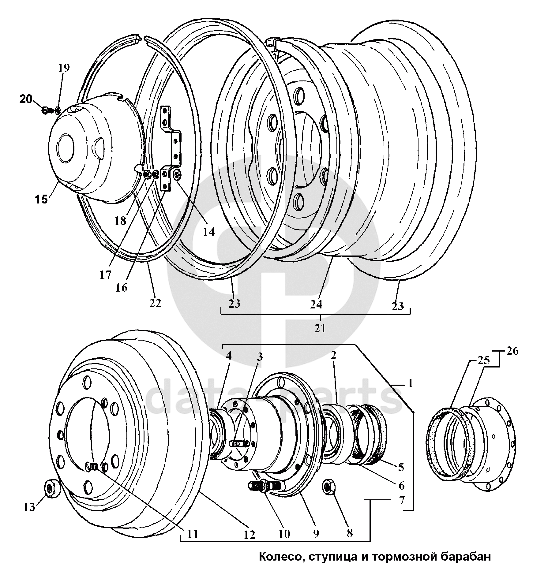 Колесо, ступица и тормозной барабан ГАЗ-3308