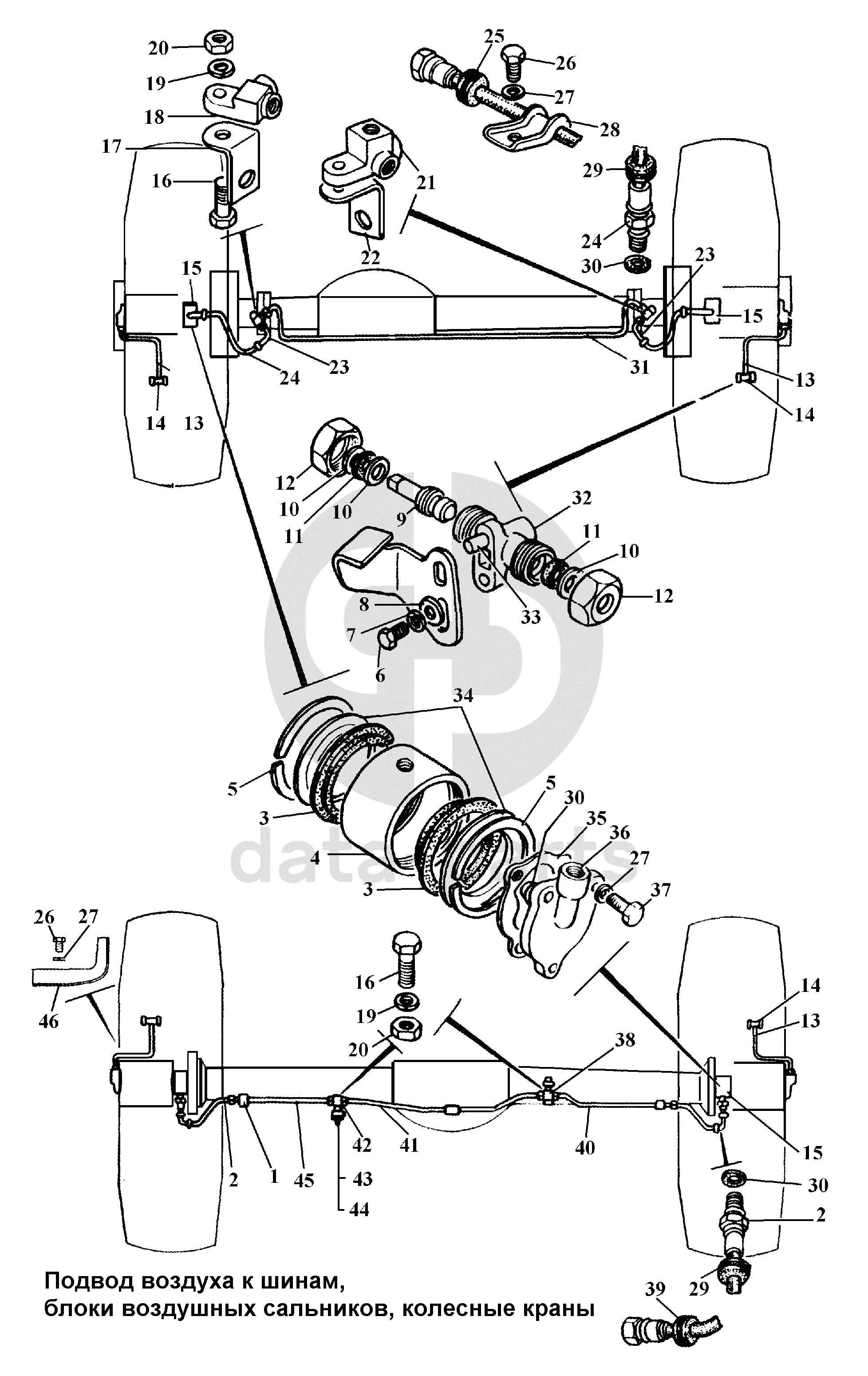 Шланг гибкий подвода воздуха к передним колесам в сборе