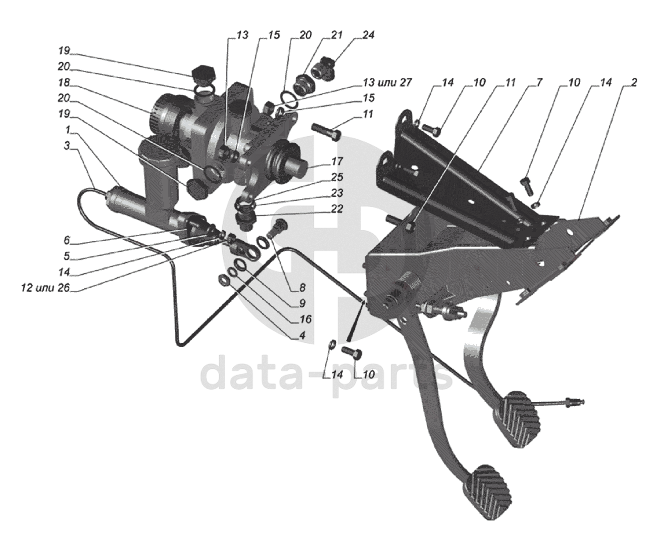 Установка привода сцепления и тормоза 33106-1602002 ГАЗ-33106 Евро 3