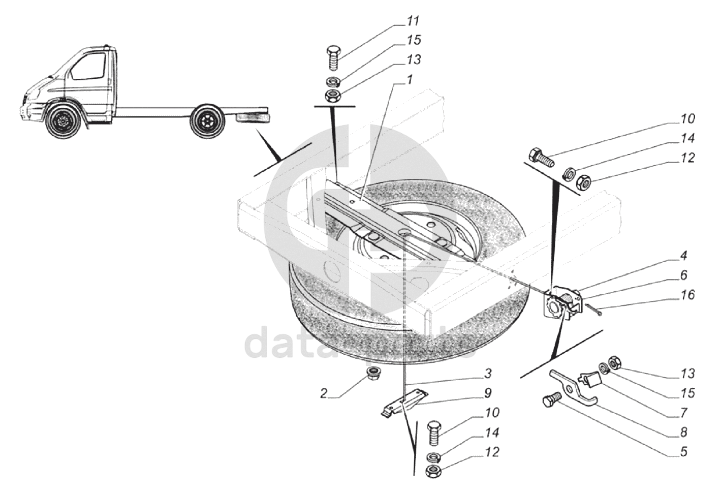 Установка держателя запасного колеса 3310-3105001 ГАЗ-33106 Евро 3