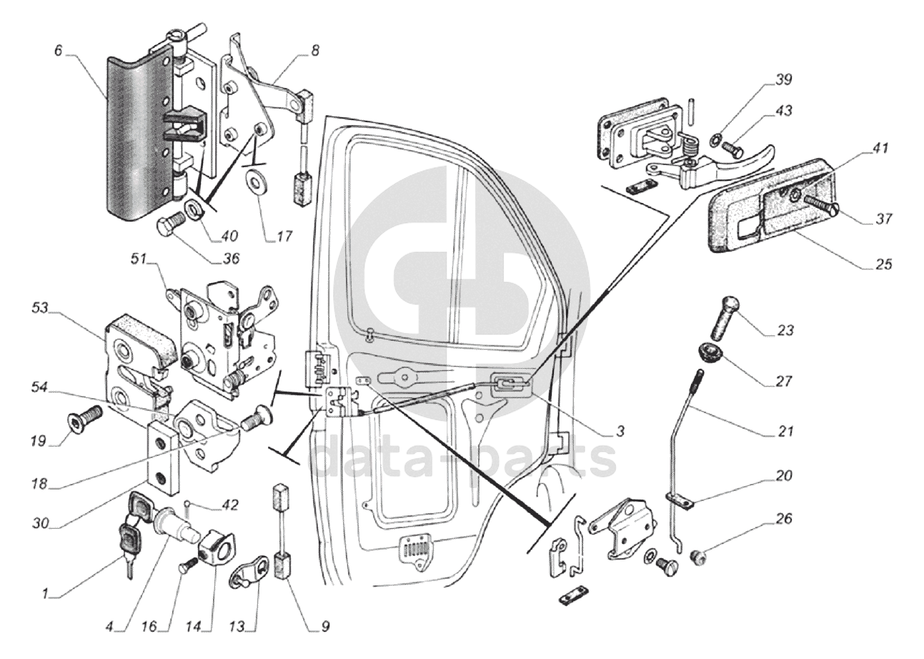 Установка замков и приводов замков передних дверей 3302-6105002-10 ГАЗ-33106 Евро 3