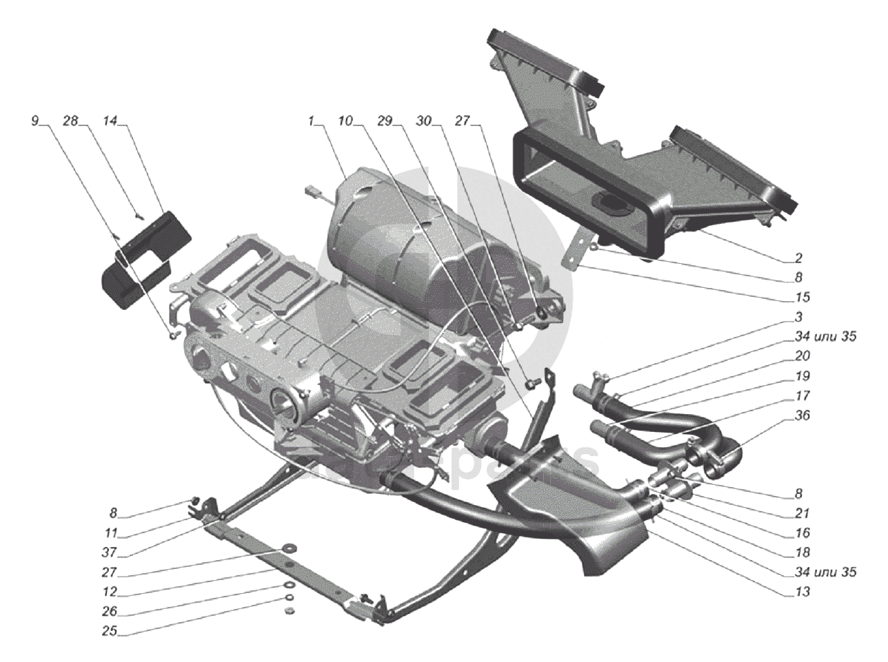 Установка отопителя ГАЗ-33106 "Валдай" 33106-8101002 ГАЗ-33106 Евро 3