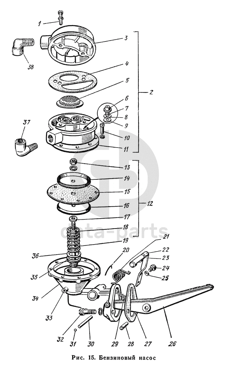 Валик ручного привода бензинового насоса с рычагом в сборе