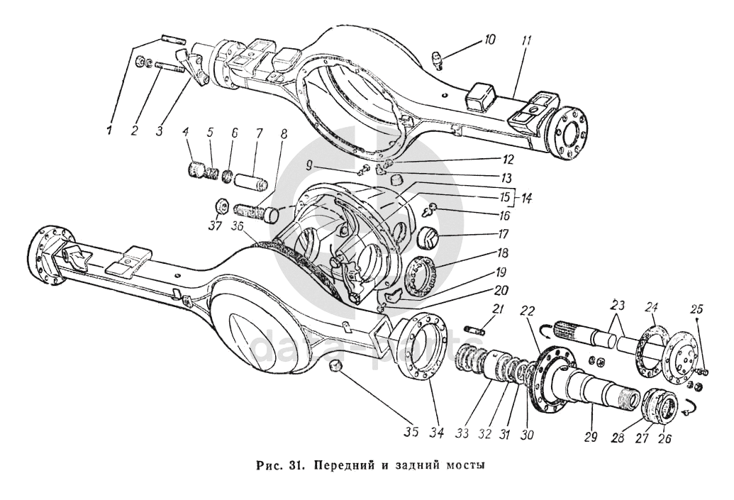 Картер редуктора заднего моста с крышками подшипников в сборе