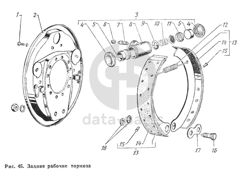 Колодка и фрикционная накладка заднего тормоза в сборе