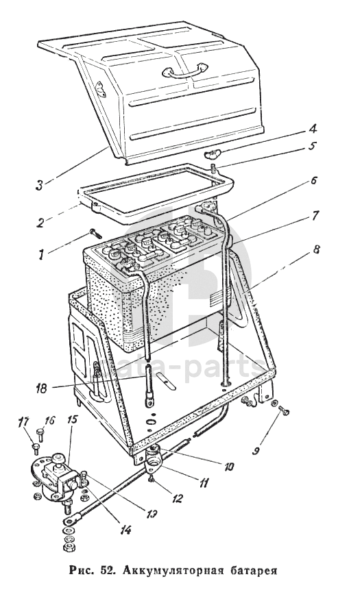 Кронштейн крепления аккумуляторной батареи с основанием, прокладками и застежками в сборе