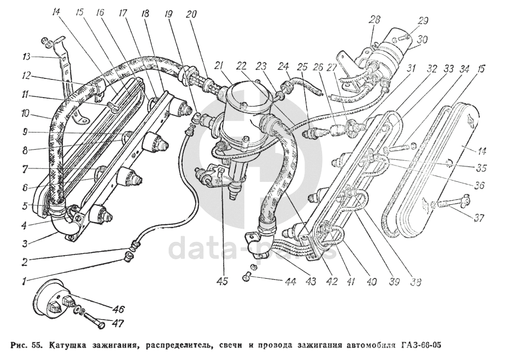 Катушка зажигания, распределитель, свечи и провода зажигания автомобиля ГАЗ-66-05 ГАЗ-66