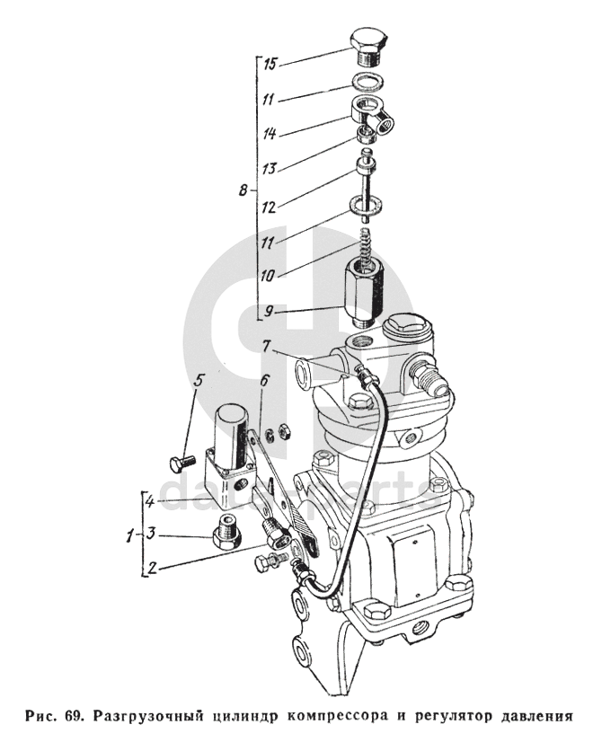 Разгрузочный цилиндр компрессора и регулятор давления ГАЗ-66