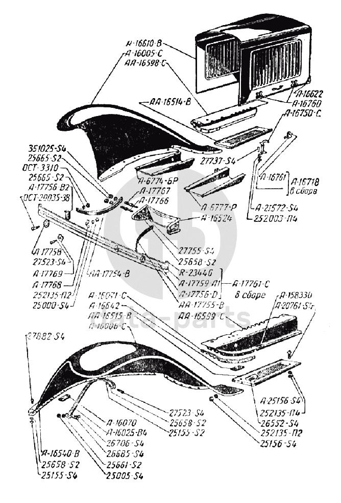 Брызговики, бампер передний, капот, крыло переднее, подножки ГАЗ-ММ "Полуторка"
