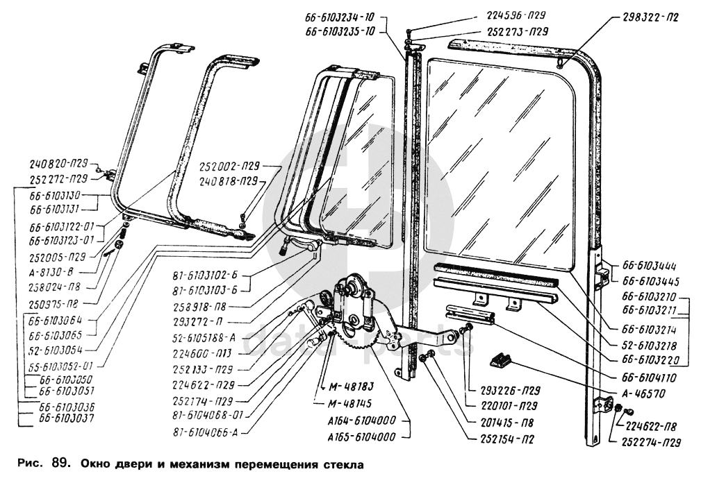 Окно двери и механизм перемещения стекла ГАЗ-66