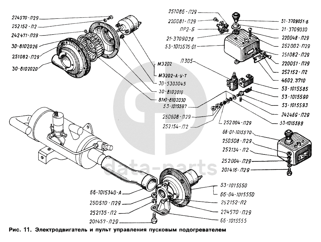 Электродвигатель и пульт управления пусковым подогревателем ГАЗ-66