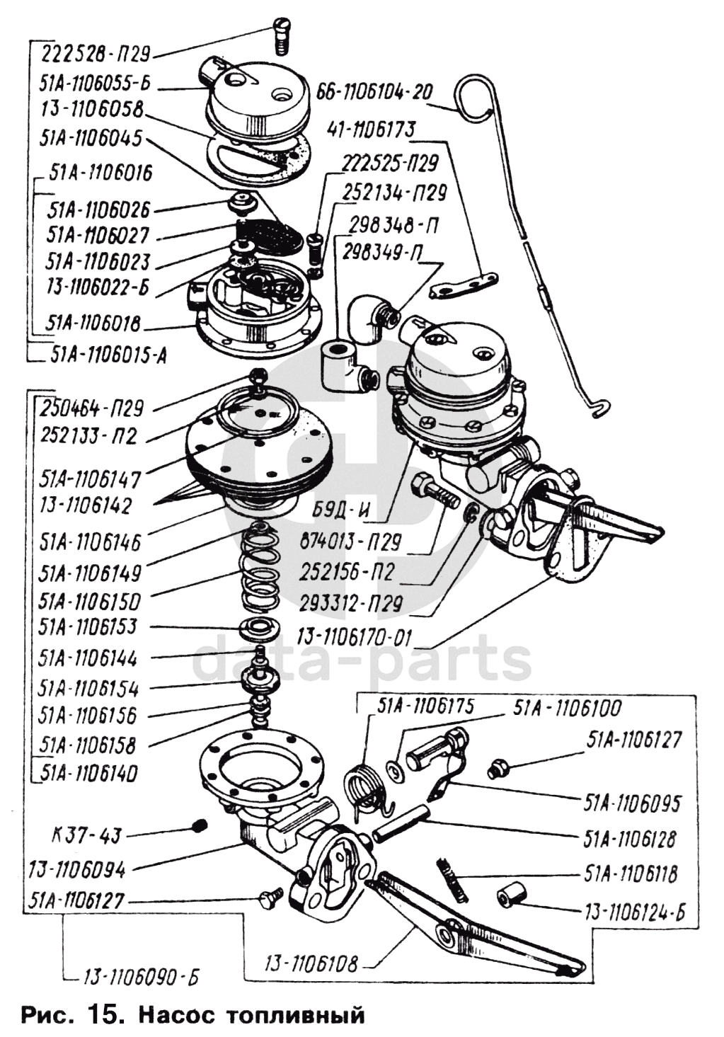 Валик ручного привода бензинового насоса с рычагом в сборе