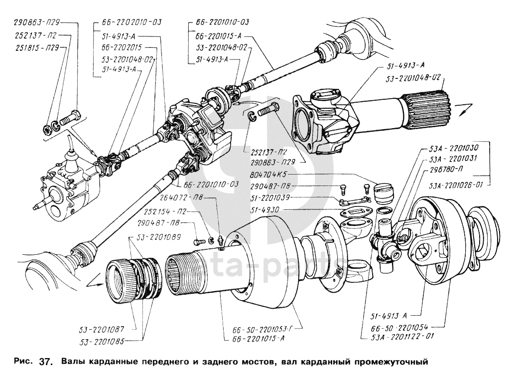 Валы карданные переднего и заднего мостов, вал карданный промежуточный ГАЗ-66