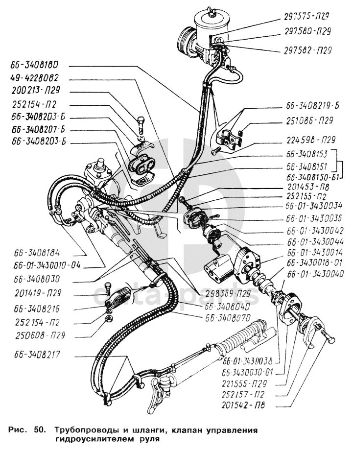 Трубопроводы и шланги, клапан управления гидроусилителем руля ГАЗ-66