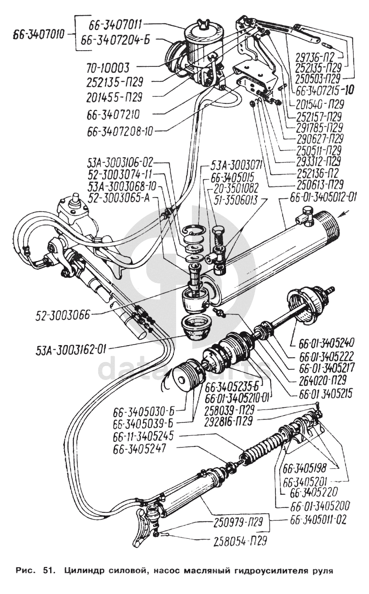 Цилиндр силовой, насос масляный гидроусилителя руля ГАЗ-66