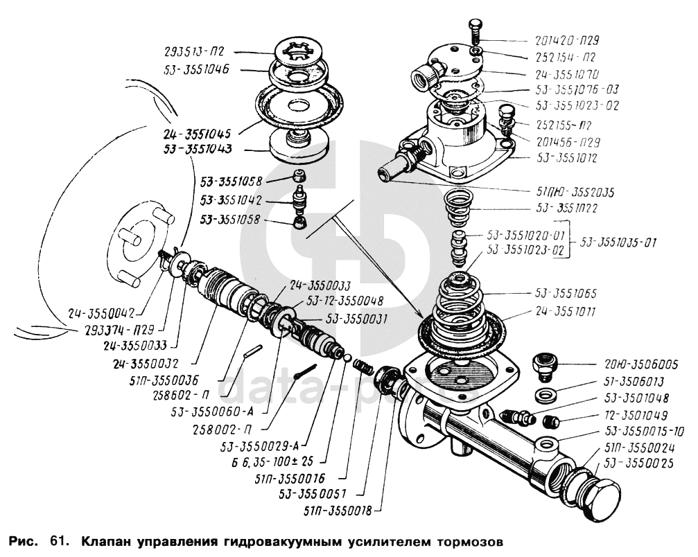 Клапан управления гидровакуумным усилителем тормозов ГАЗ-66