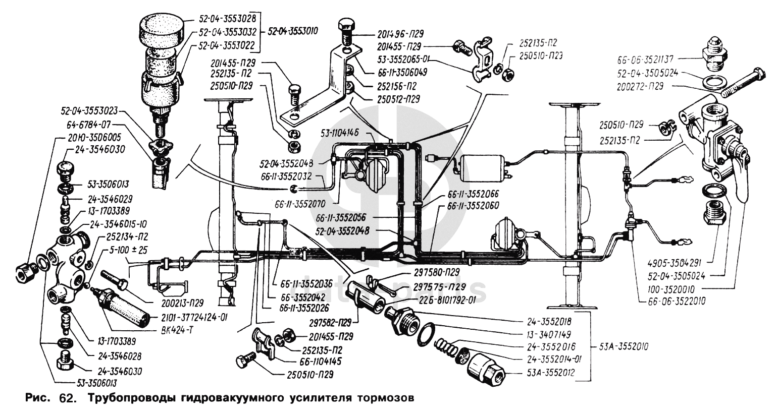 Трубопроводы гидровакуумного усилителя тормозов ГАЗ-66