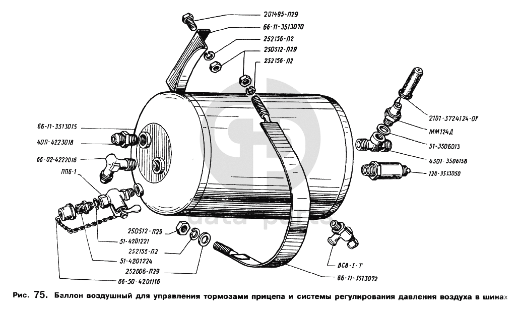 Баллон воздушный для управления тормозами прицепа и системы регулирования давления воздуха в шинах ГАЗ-66