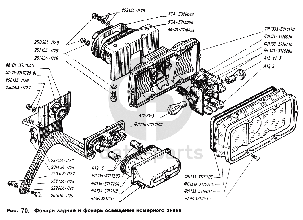 Фонари задние и фонарь освещения номерного знака ГАЗ-66