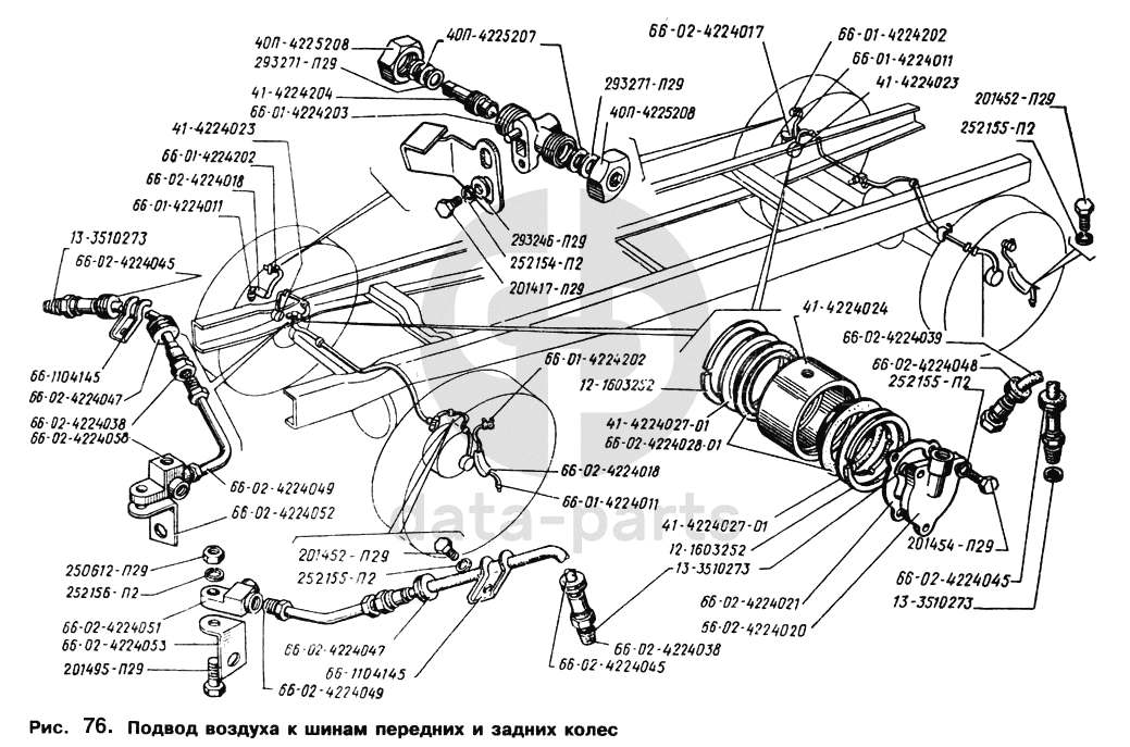 Подвод воздуха к шинам передних и задних колес ГАЗ-66