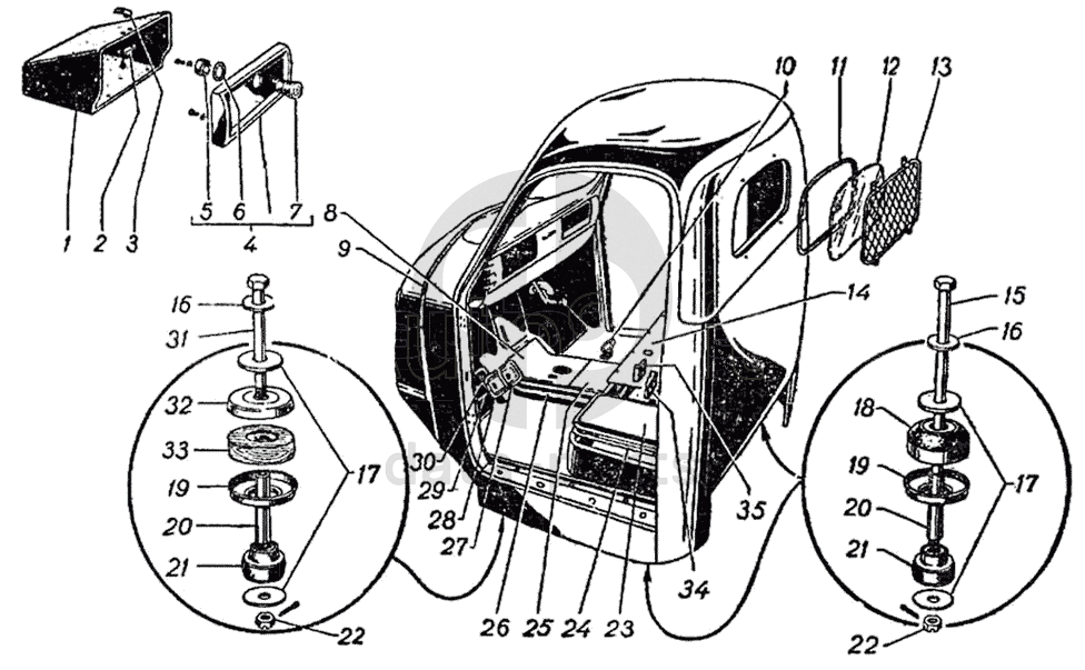 Чашка верхней подушки бокового и заднего крепления кабины к раме
