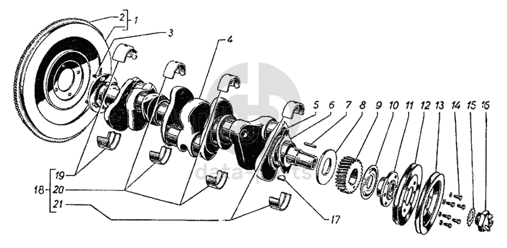 Коленчатый вал и маховик ГАЗ-51 (63, 63А)