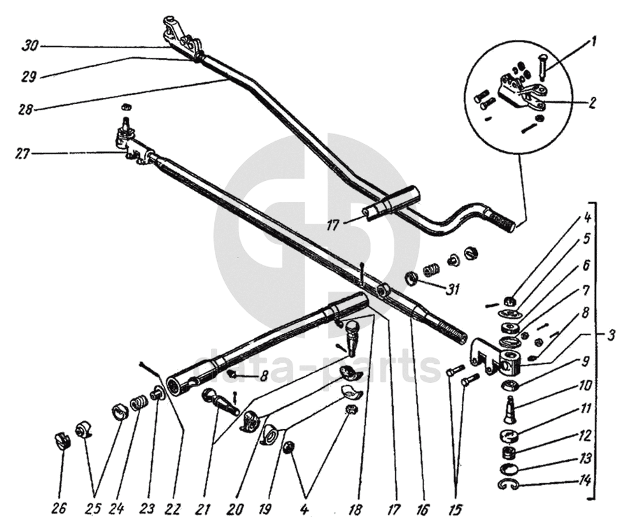 Поперечная рулевая тяга переднего моста ГАЗ-51 (63, 63А)
