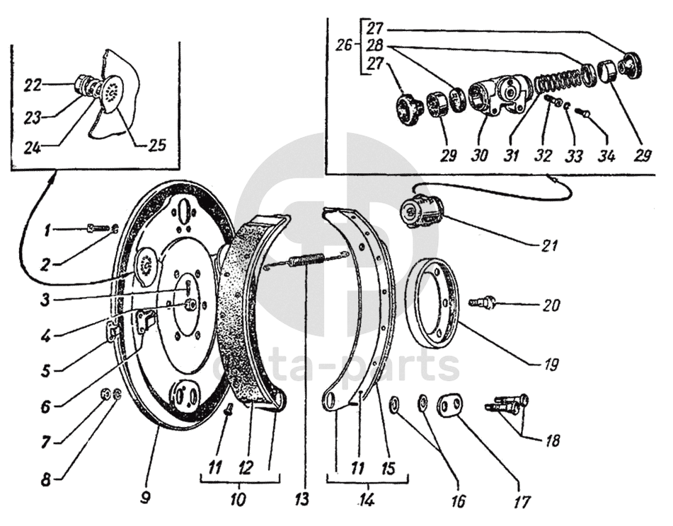 Детали для колесного цилиндра переднего тормоза (комплект состоит из деталей 51-3501051 и 51-3501058)