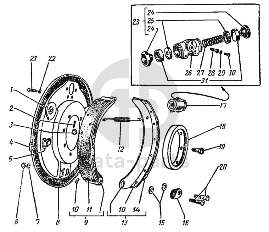Задние ножные тормоза ГАЗ-51 (63, 63А)