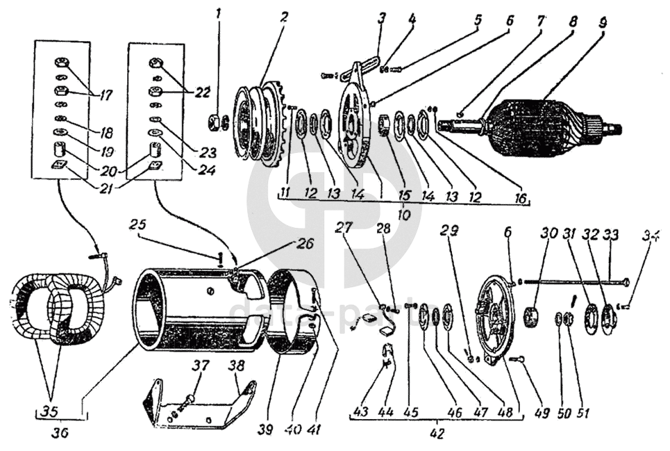 Винт крепления держателя сальника переднего подшипника якоря генератора