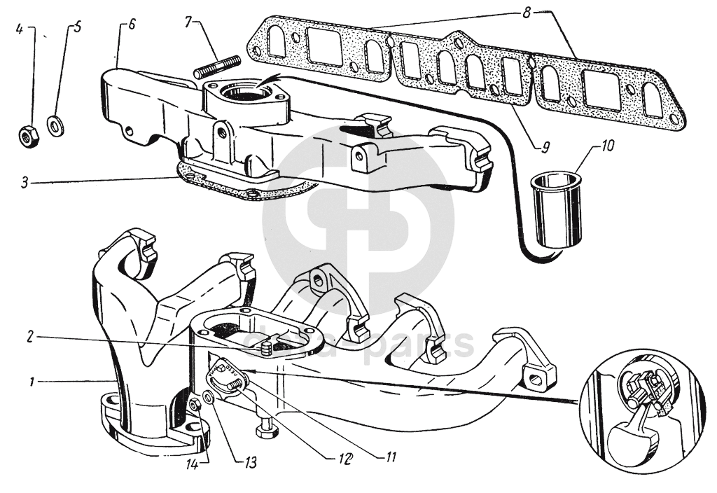 Прокладка между впускной трубой и выпускным коллектором