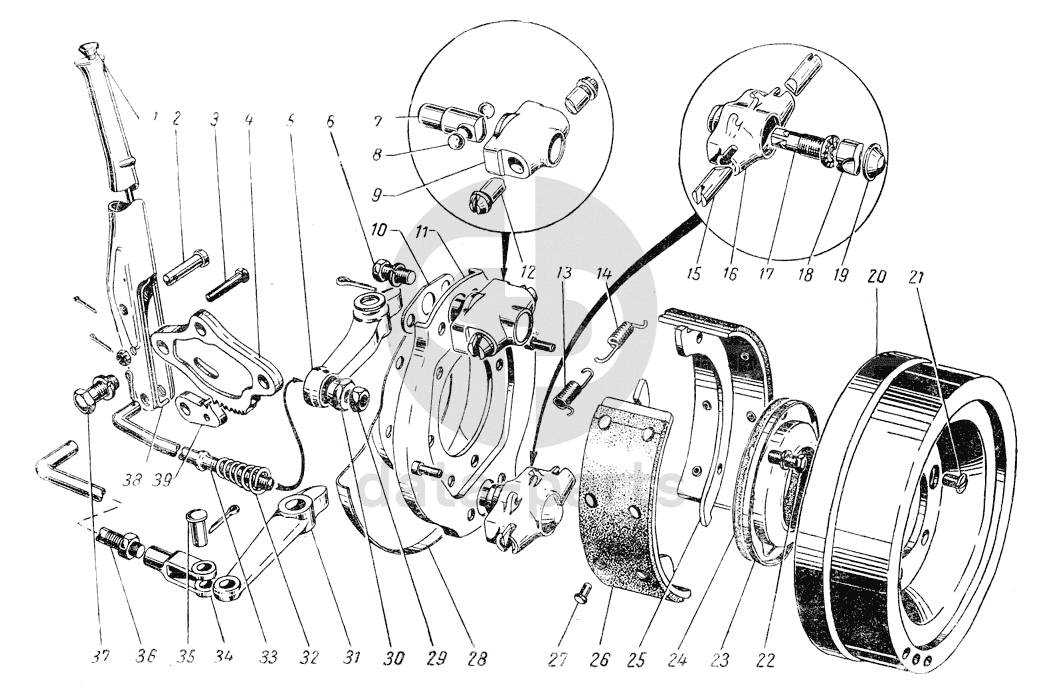 Ручной тормоз и управление им ГАЗ-51 (63, 93)