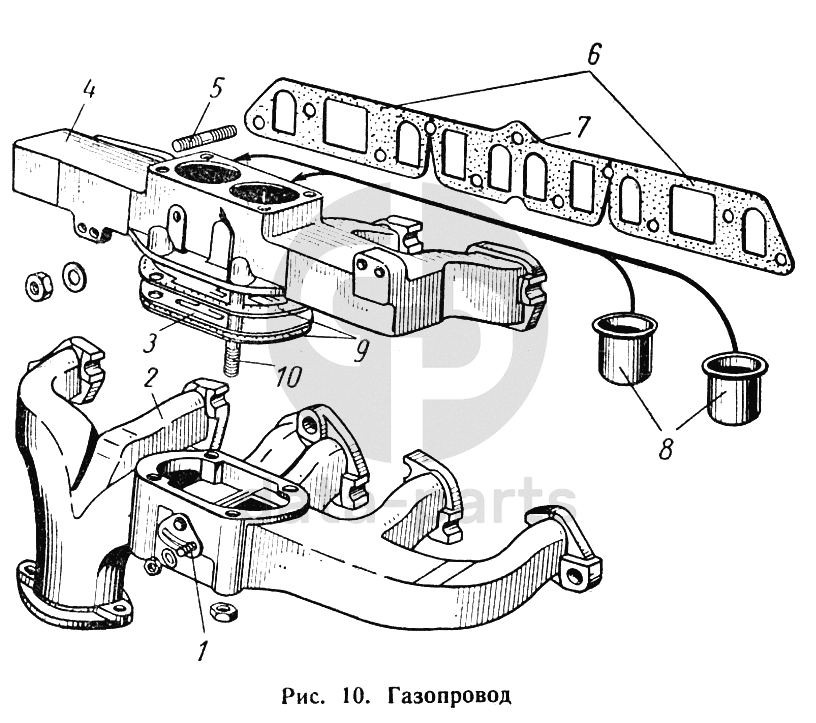Прокладка между впускной трубой и выпускным коллектором