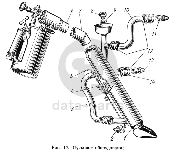 Лампа пускового подогревателя с инструментом и деталями в сборе