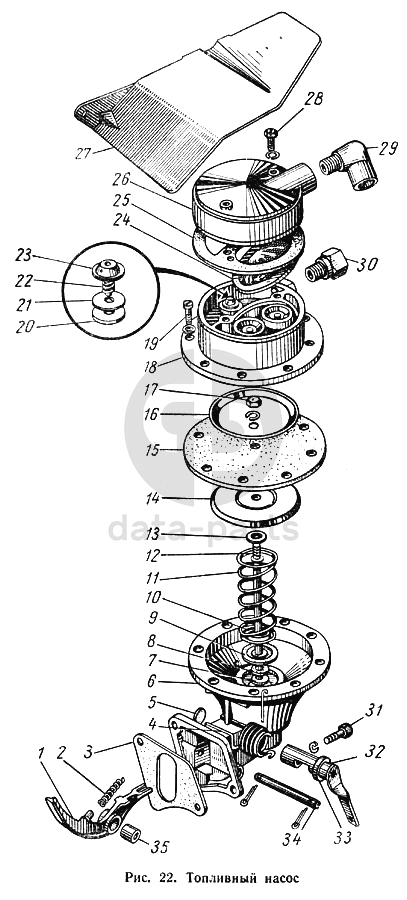 Валик ручного привода бензинового насоса с рычагом в сборе