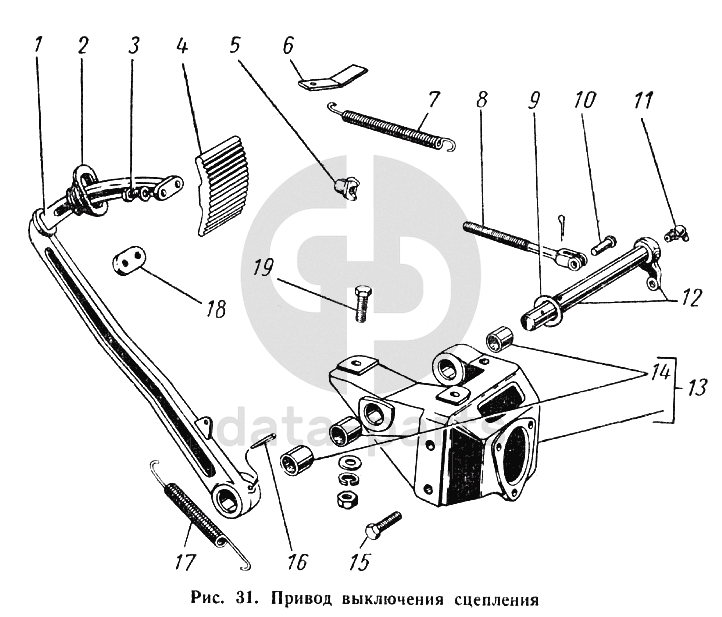 Привод выключения сцепления ГАЗ-52-01