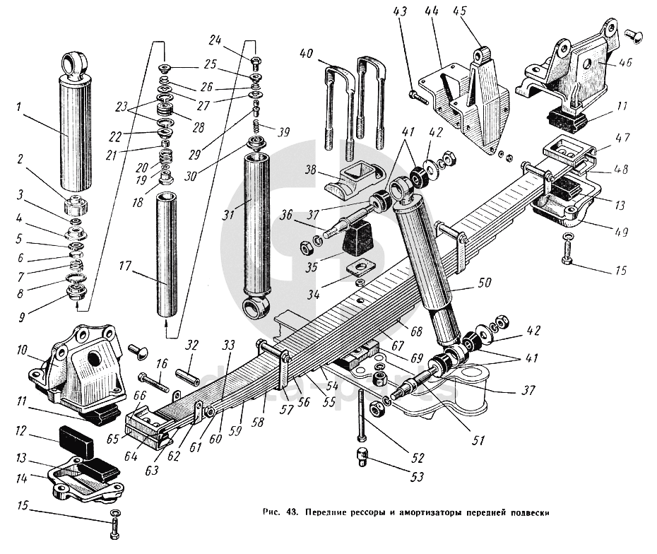 Передние рессоры и амортизаторы передней подвески ГАЗ-52-01