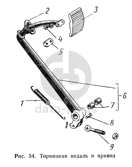 Тормозная педаль и привод ГАЗ-52-01