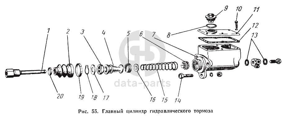 Главный цилиндр гидравлического тормоза ГАЗ-52-01
