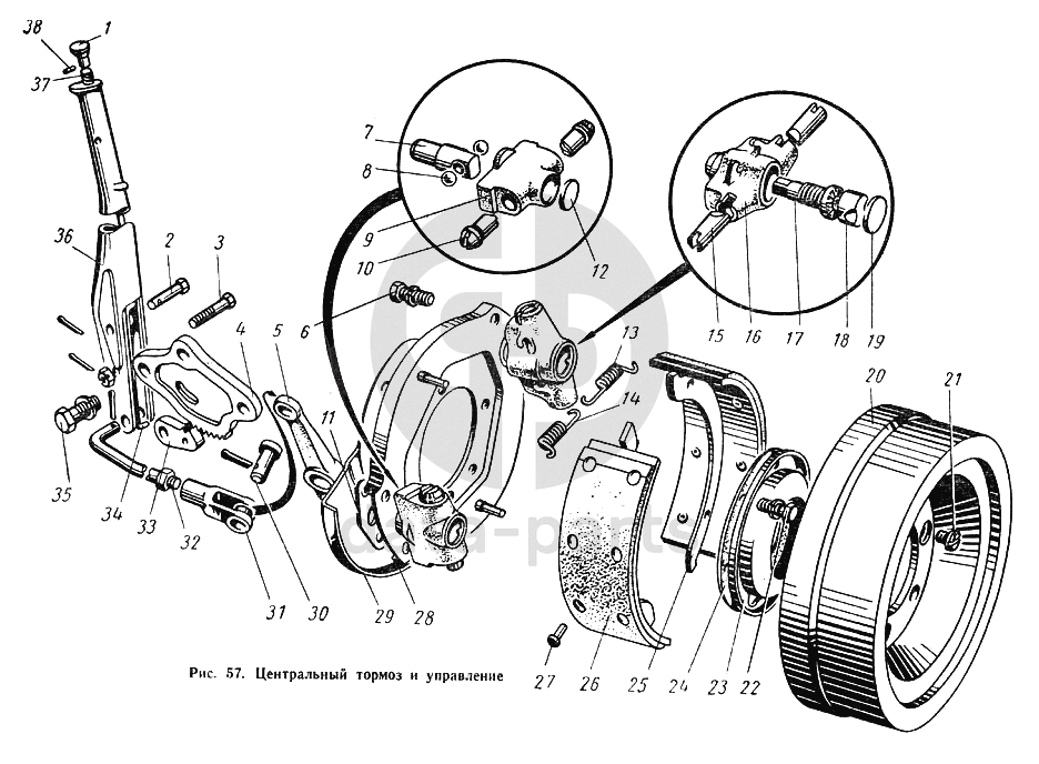 Ограничитель хода корпуса шариков разжимного механизма центрального тормоза