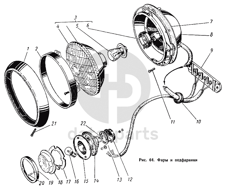 Элемент оптический полуразборной фары в сборе (ФГ105-3711200)