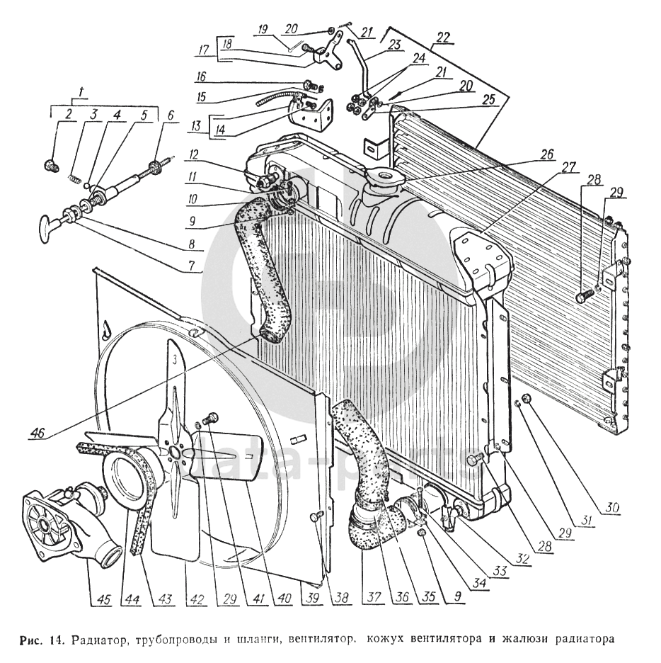 Радиатор, трубопроводы и шланги, вентилятор, кожух, вентилятора и жалюзи радиатора ГАЗ-52-02