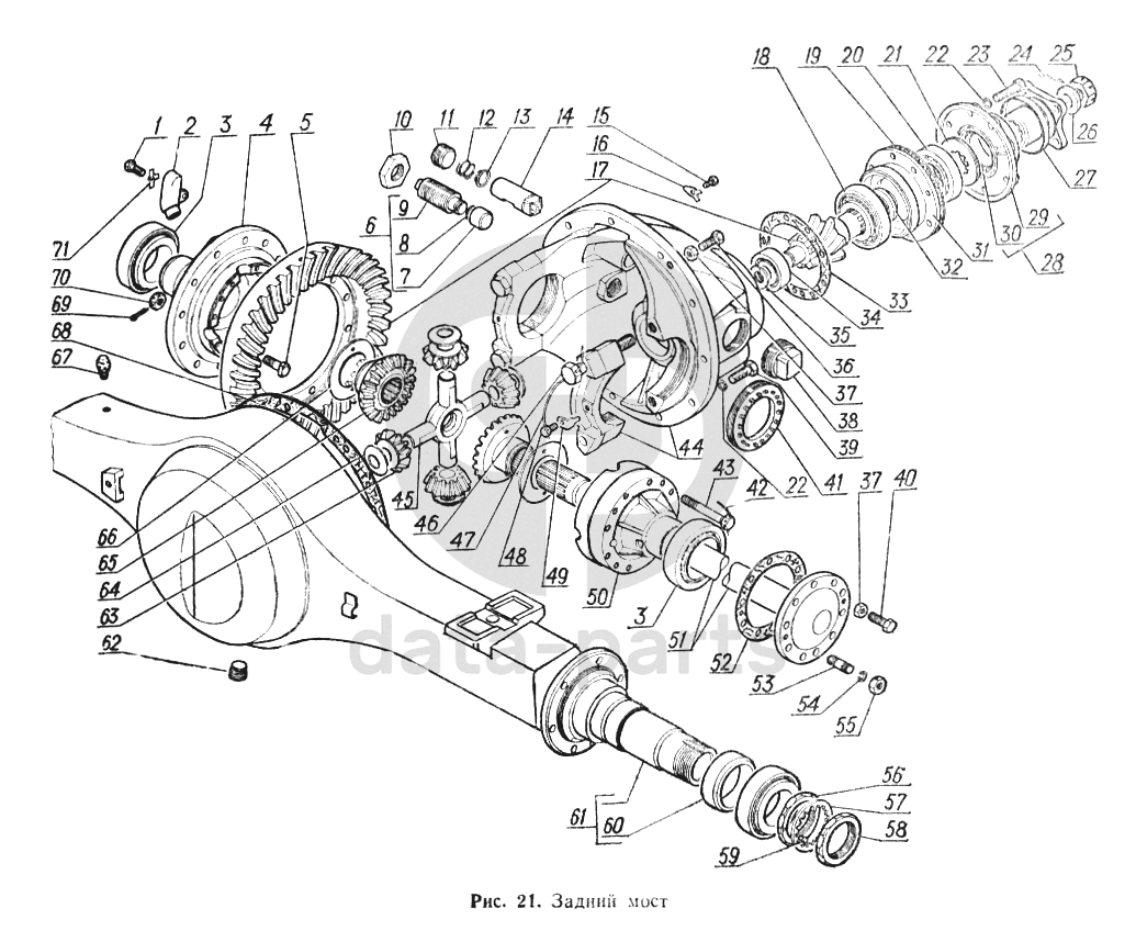 Картер редуктора заднего моста с крышками подшипников в сборе